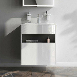 Тумба под раковину подвесная AM.PM FUNC 60 M8FFUX0601WG 1 ящик pull-out, цвет БЕЛЫЙ с черной нишей